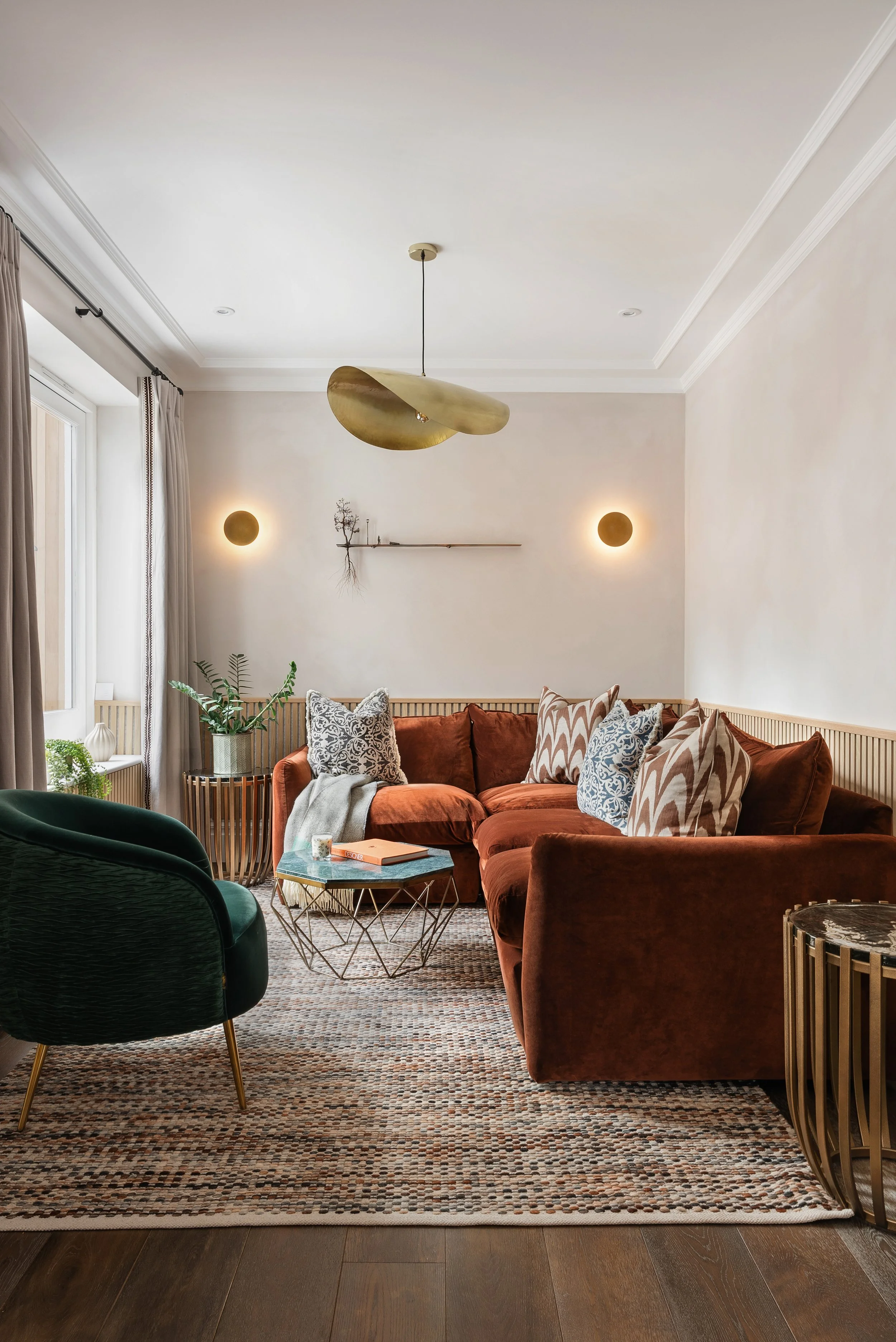 The Snug is a perfect example of how a space can feel both inviting and stylish. Featuring elegant panelling on the walls, the room embraces the classic elements of the home while creating a soft, intimate atmosphere. We chose to reuse the client's existing sofas, giving them new life by layering textured soft furnishings and introducing patterned fabrics. This not only added visual interest but also enhanced the warmth and comfort of the room. The result is a calming retreat, ideal for both quiet relaxation and casual gatherings.